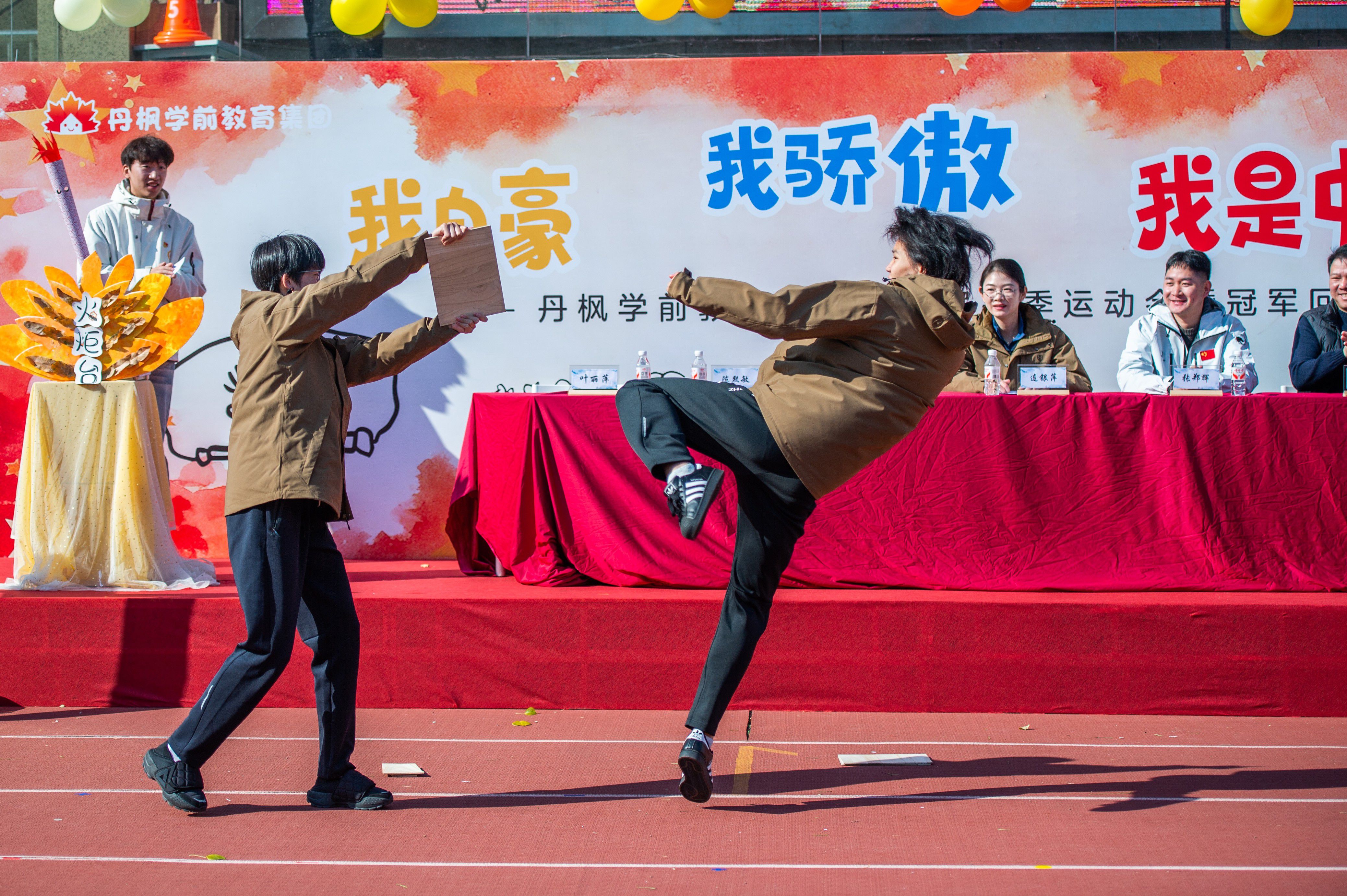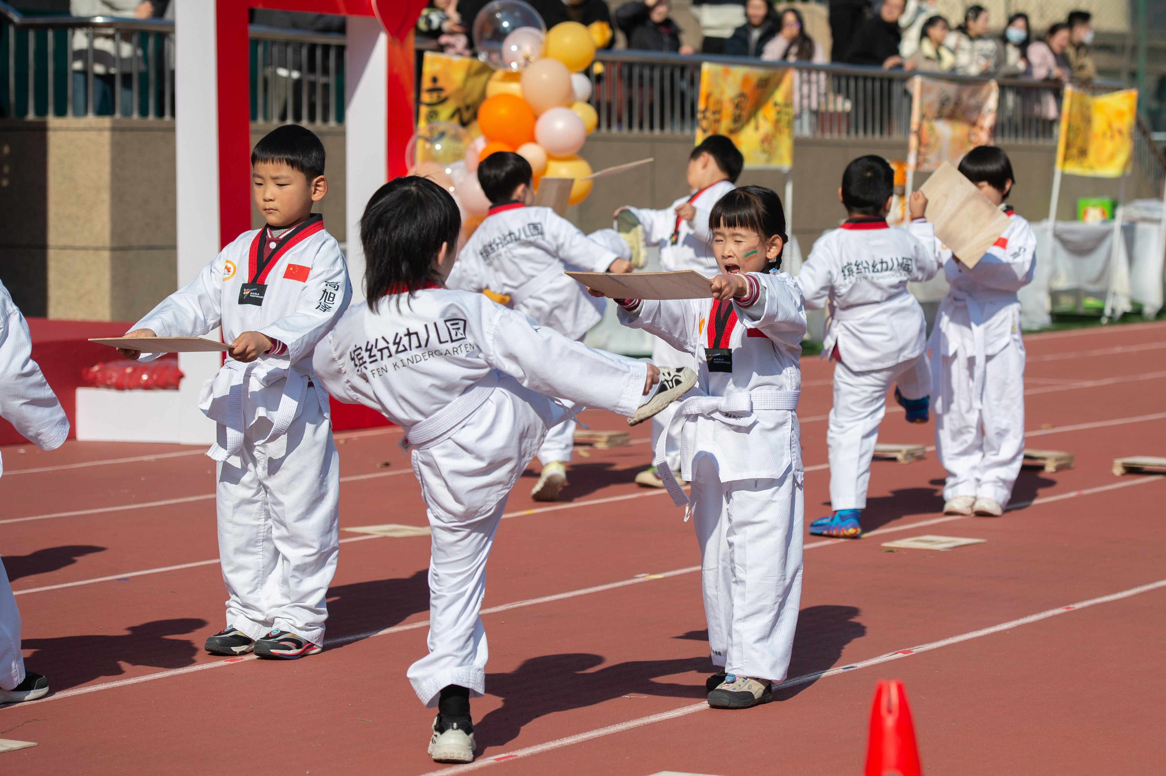 0571-8763318212月6日,冬日暖阳洒满校园,杭州市滨江区丹枫幼儿园迎来了一场别开生面的“冠军进校园”活动。省跆拳道协会秘书长张郑辉、省跆拳道女队主教练连银萍,携两位全国冠军——陈熙敏与傅晓璐,来到孩子们身边,用亲身经历与热情互动,为幼儿园的小朋友们带来一场充满力量与梦想的跆拳道启蒙之旅。