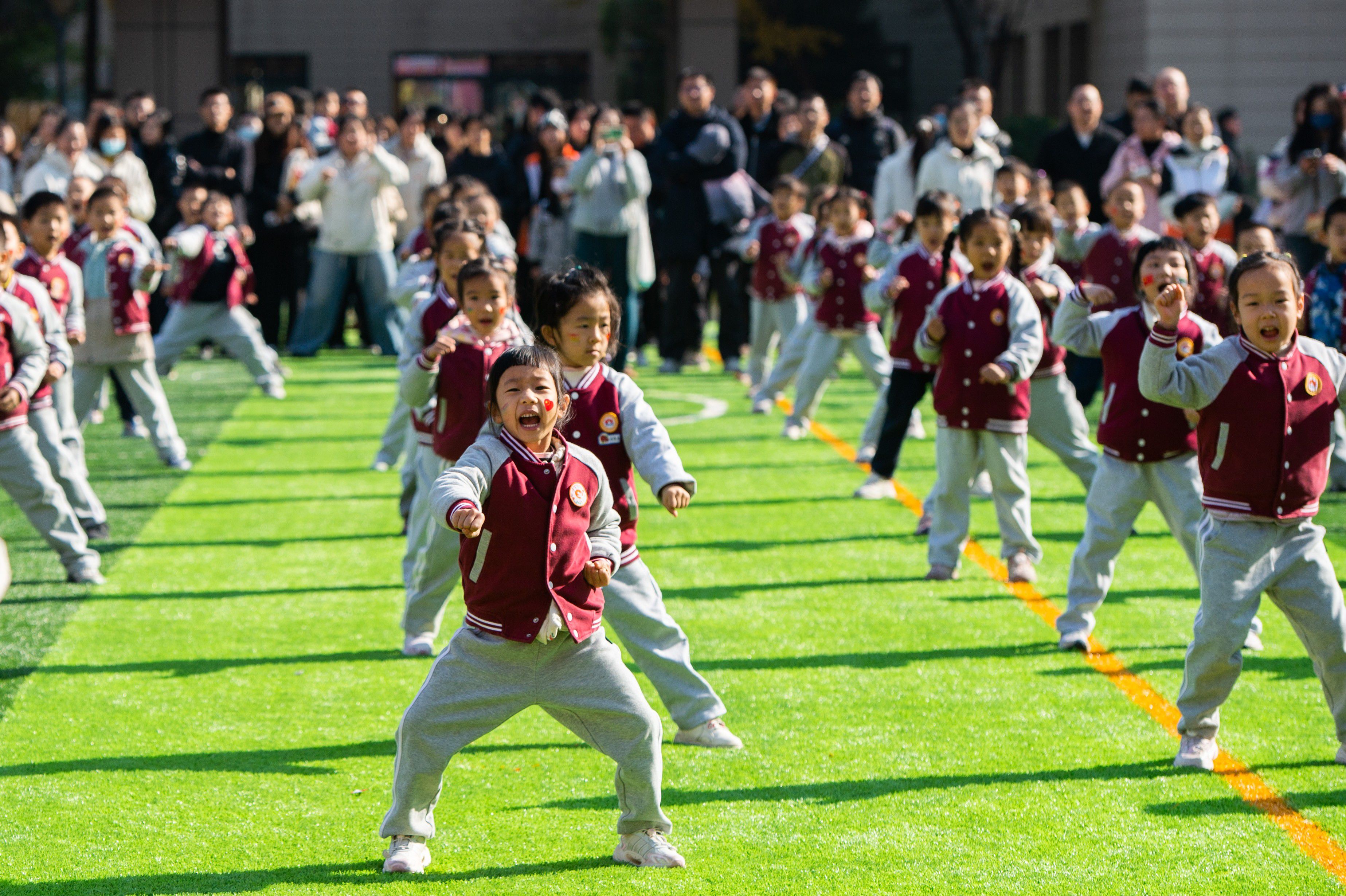 在互动提问环节,孩子们踊跃发问:“冠军姐姐,你们每天训练多久?”“比赛前会紧张吗?”“你们最喜欢的动作是什么?”冠军们耐心作答,并现场演示高难度动作,引发孩子们阵阵惊叹。